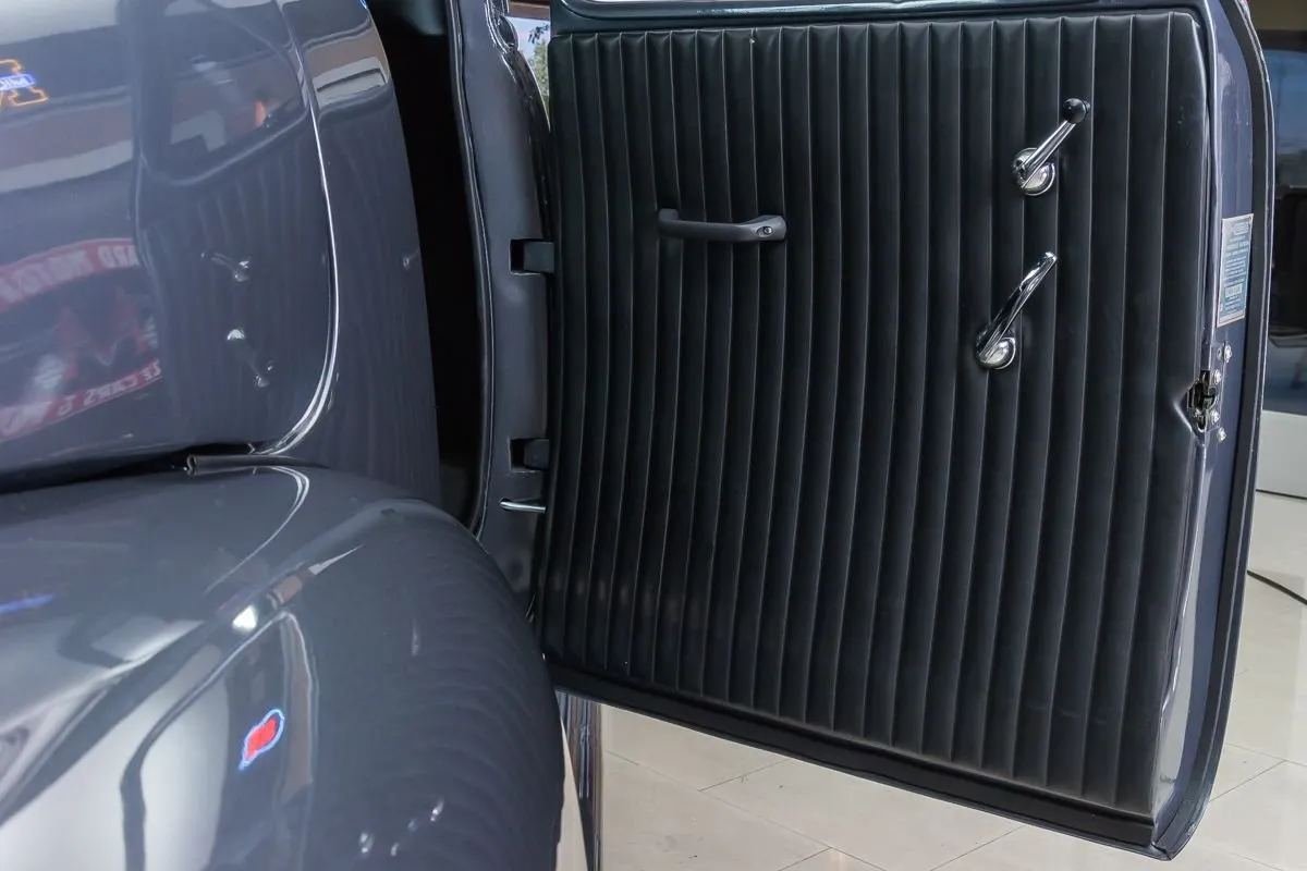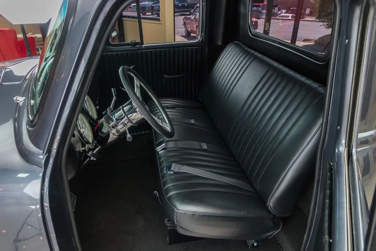 The exterior is finished in a dark charcoal metallic that complements the classic lines of the 3100 while giving it a subtle custom edge. Details such as the wood bed floor, clean body lines, and tasteful trim choices highlight the quality of the restoration without overpowering the truck’s original design. Inside, the cabin offers a clean, functional layout with upgraded seating, modern gauges, and thoughtful touches that balance comfort with classic appeal.