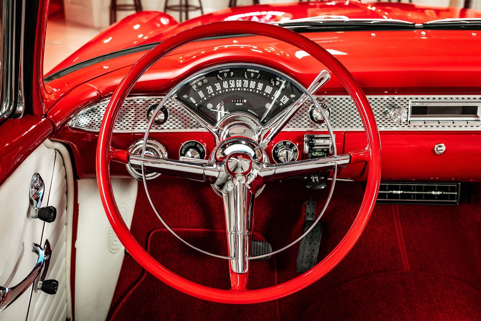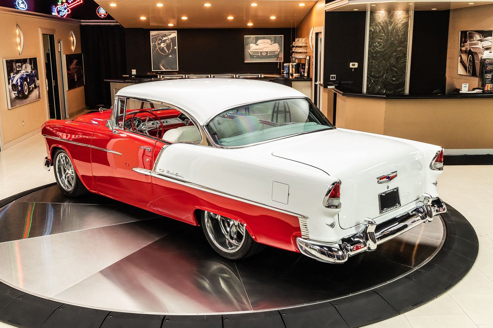Driving dynamics have been thoroughly modernized as well. Independent front suspension, a multi-link rear setup, power rack-and-pinion steering, and four-wheel power disc brakes provide confident handling and strong stopping power. These upgrades allow the car to perform more like a modern vehicle while retaining the unmistakable feel of a classic ’50s Chevrolet.