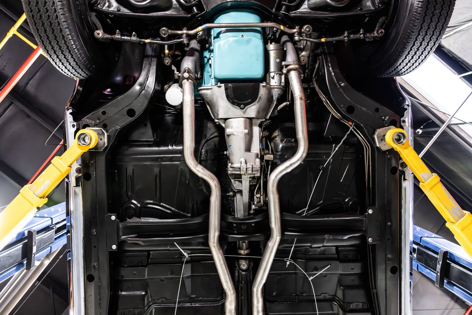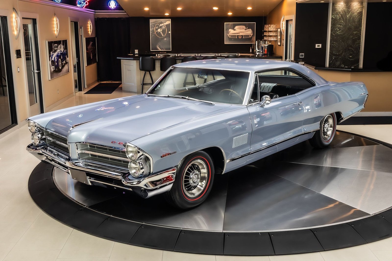 Finished in light blue, this Catalina presents with a clean, classic look that highlights its expansive body lines and unmistakable Pontiac design cues. The iconic 8-lug wheels give the car an immediate performance identity, while the overall fit and finish reflect the quality of a frame-off restoration completed with careful attention to detail.