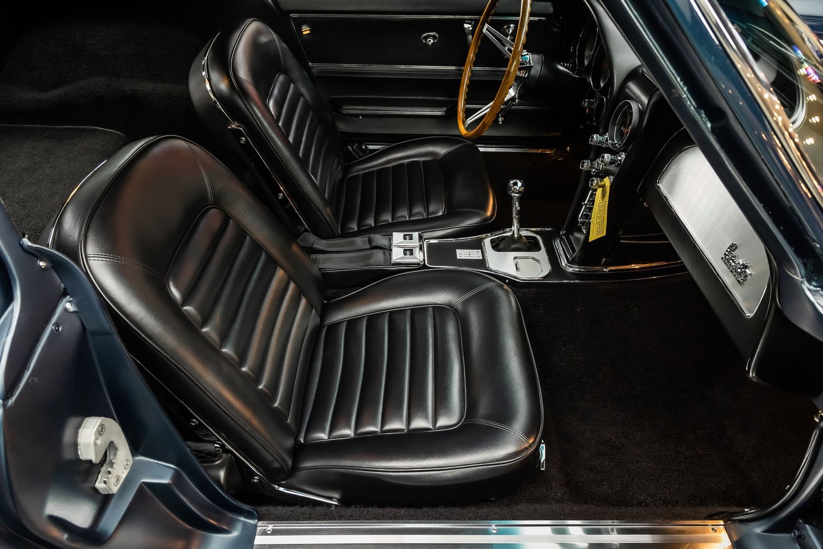 Inside, the black interior remains faithful to original specifications, featuring bucket seats, factory instrumentation, and classic Corvette cockpit design. From the restored undercarriage to the documented drivetrain and award recognition, this Stingray Coupe represents a rare opportunity to own a meticulously restored, historically significant Corvette built to exacting standards.