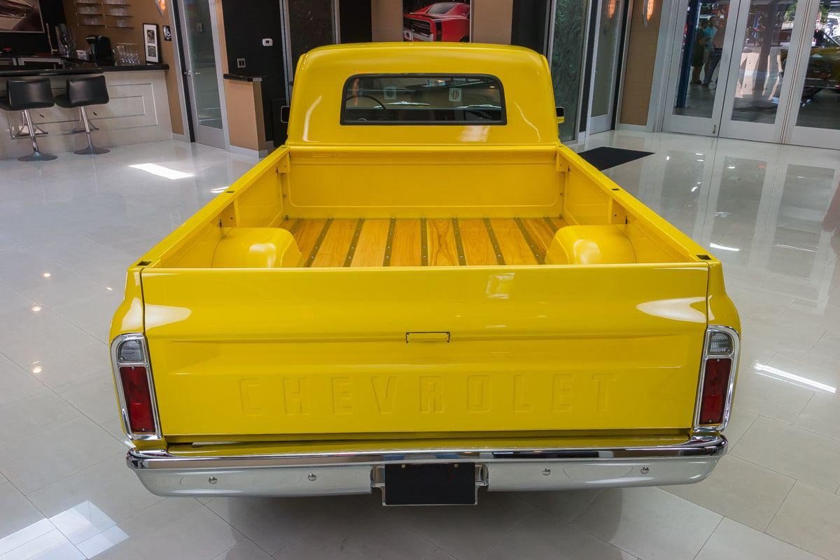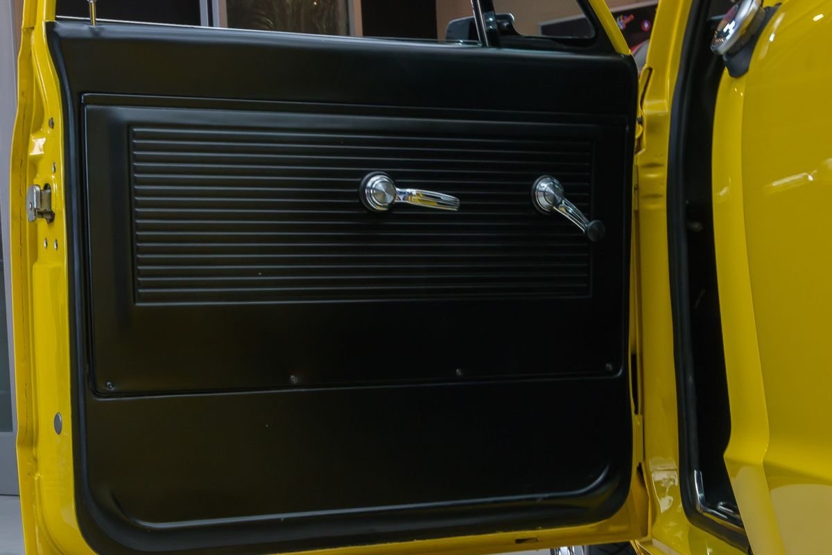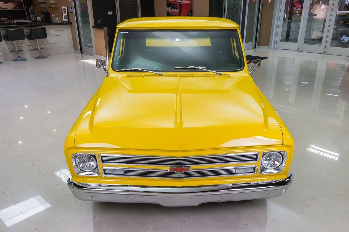 Finished in a bright yellow exterior, the body showcases straight original metal and clean lines that highlight the timeless C10 design. Inside, the black interior offers a simple, functional layout with updated instrumentation and a floor shifter, keeping the focus on driving enjoyment. Overall, this C10 delivers classic pickup style paired with modern big-block performance in a well-executed restoration.