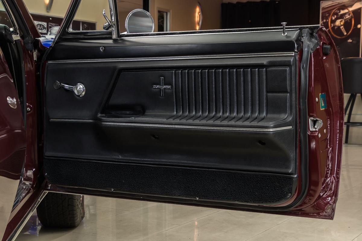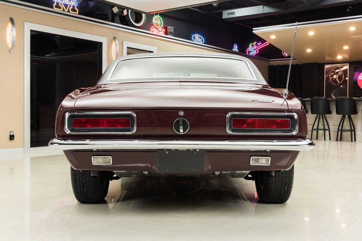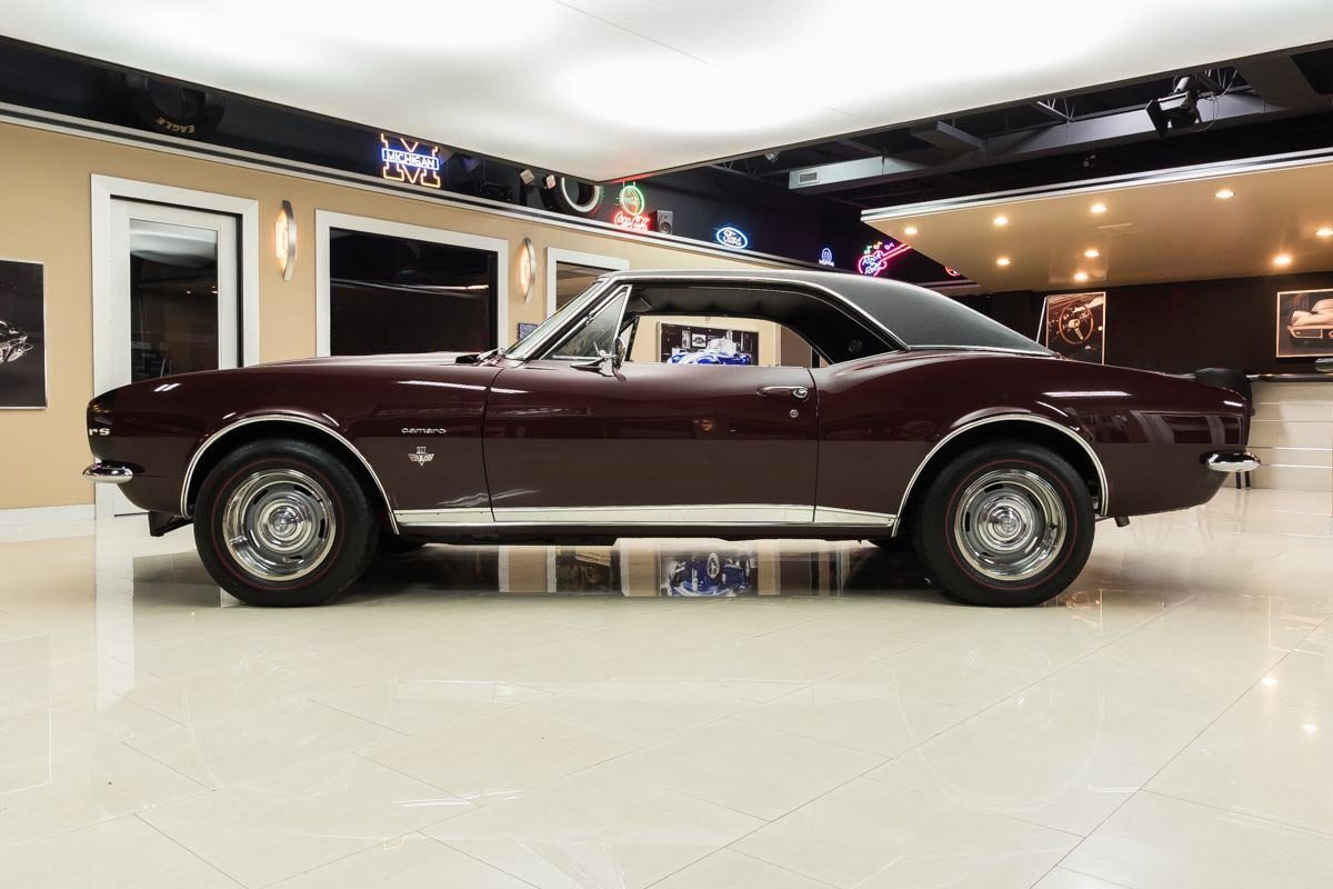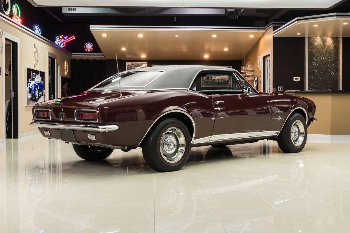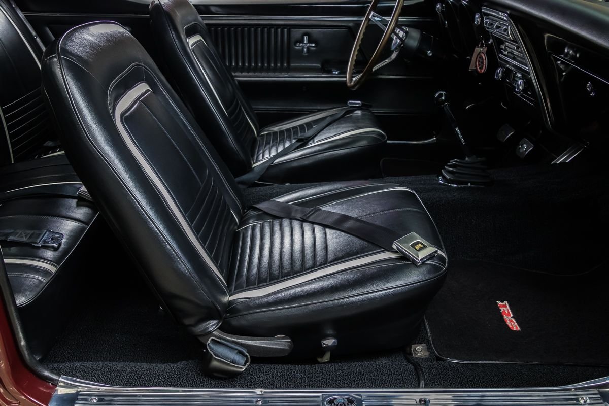 This example is a true factory RS and has benefited from a comprehensive, nut-and-bolt restoration completed with close attention to originality and presentation. Finished in Madeira Maroon with a contrasting black vinyl top, the car captures the elegant yet aggressive character that made early Camaros so desirable. The straight body, correct styling elements, and period-correct appearance reflect the quality of the restoration work.
