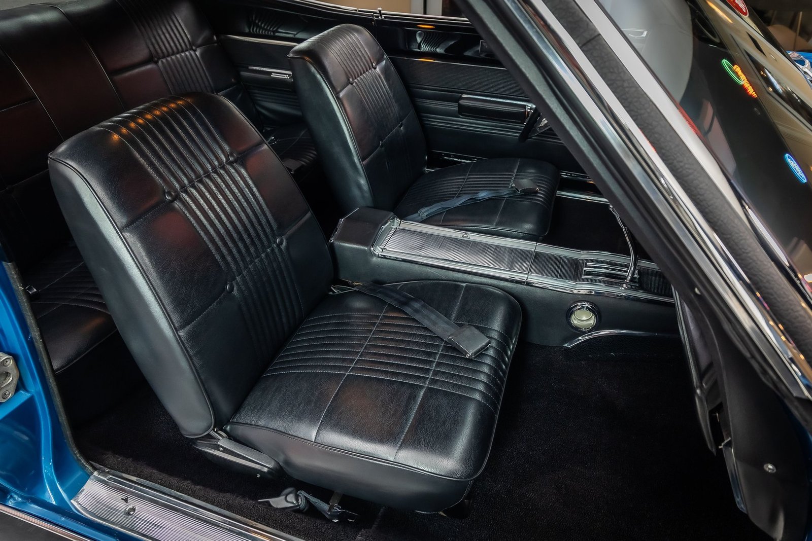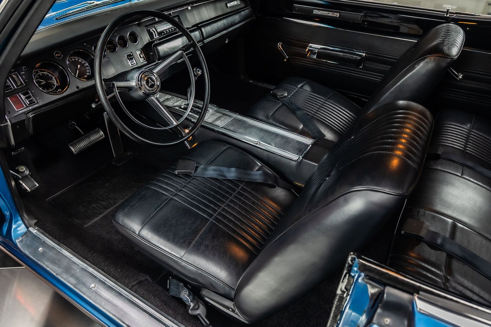 Inside, the black interior reflects a factory-style layout with bucket seating, a center console, and original-style instrumentation. The cabin maintains an authentic, driver-focused feel that pairs perfectly with the car’s muscular character. Altogether, this 1968 Coronet R/T offers a rare combination of documented authenticity, restored quality, and timeless Mopar performance.