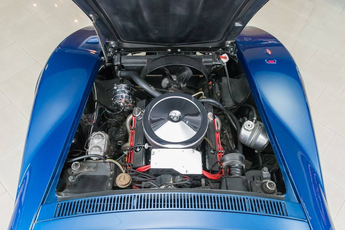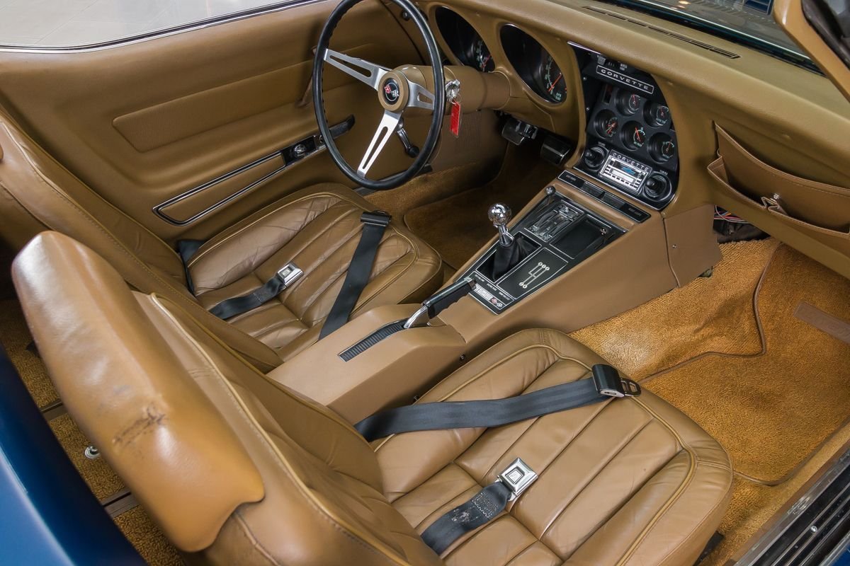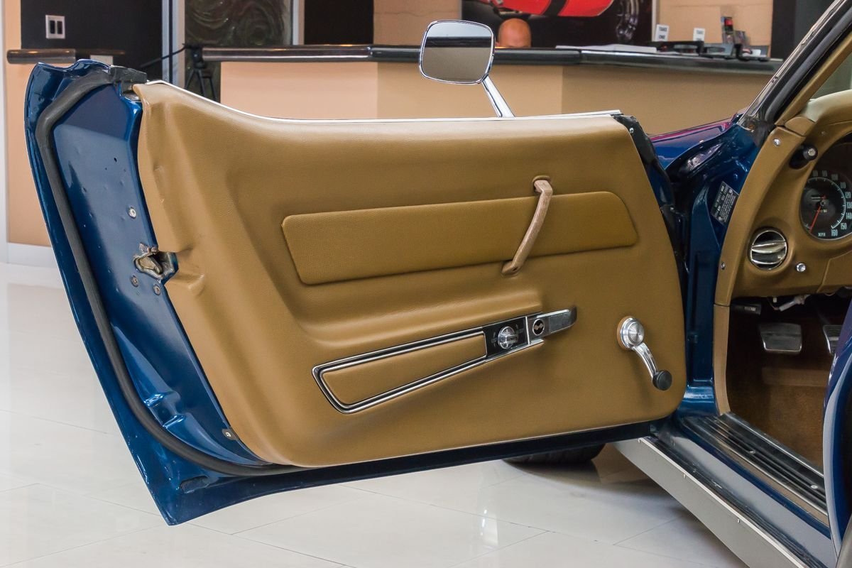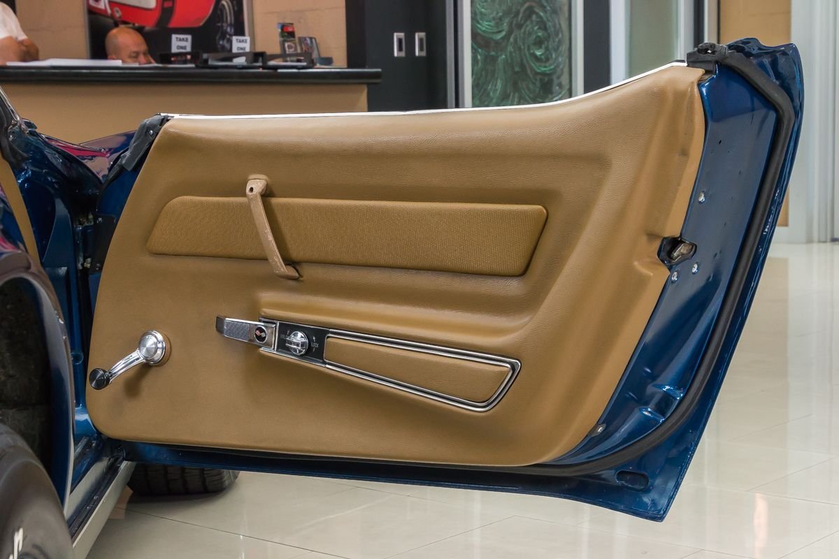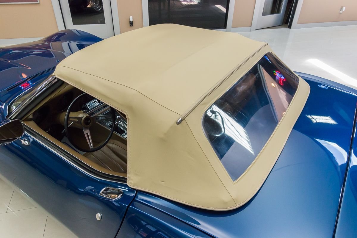 This example has undergone a frame-off restoration and has been carefully owned and lightly driven since completion. Finished in a rich blue metallic with a contrasting tan convertible top, the car presents with clean lines, excellent panel fit, and a well-preserved appearance that reflects proper care and storage. The convertible configuration adds an extra layer of enjoyment, allowing drivers to fully experience the sound and feel of a classic Corvette V8.