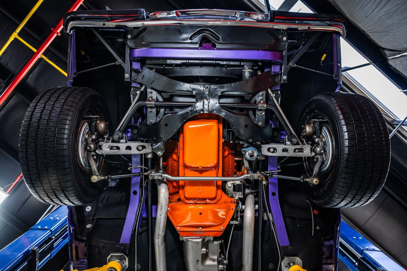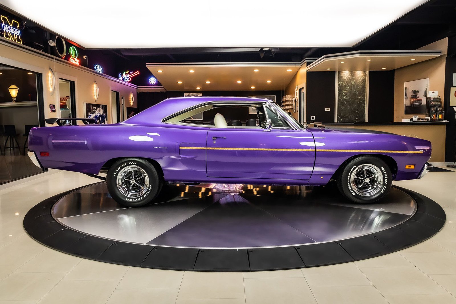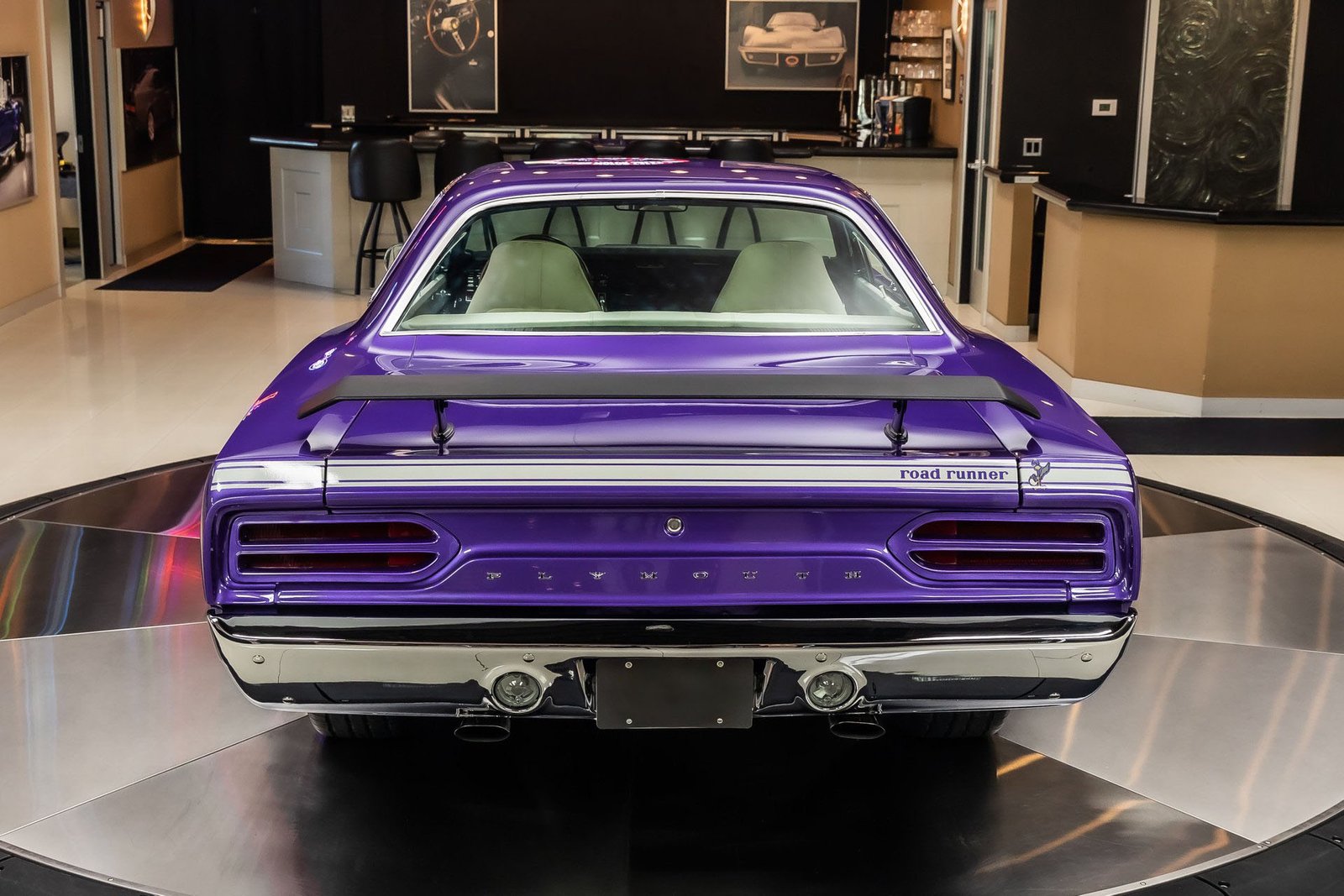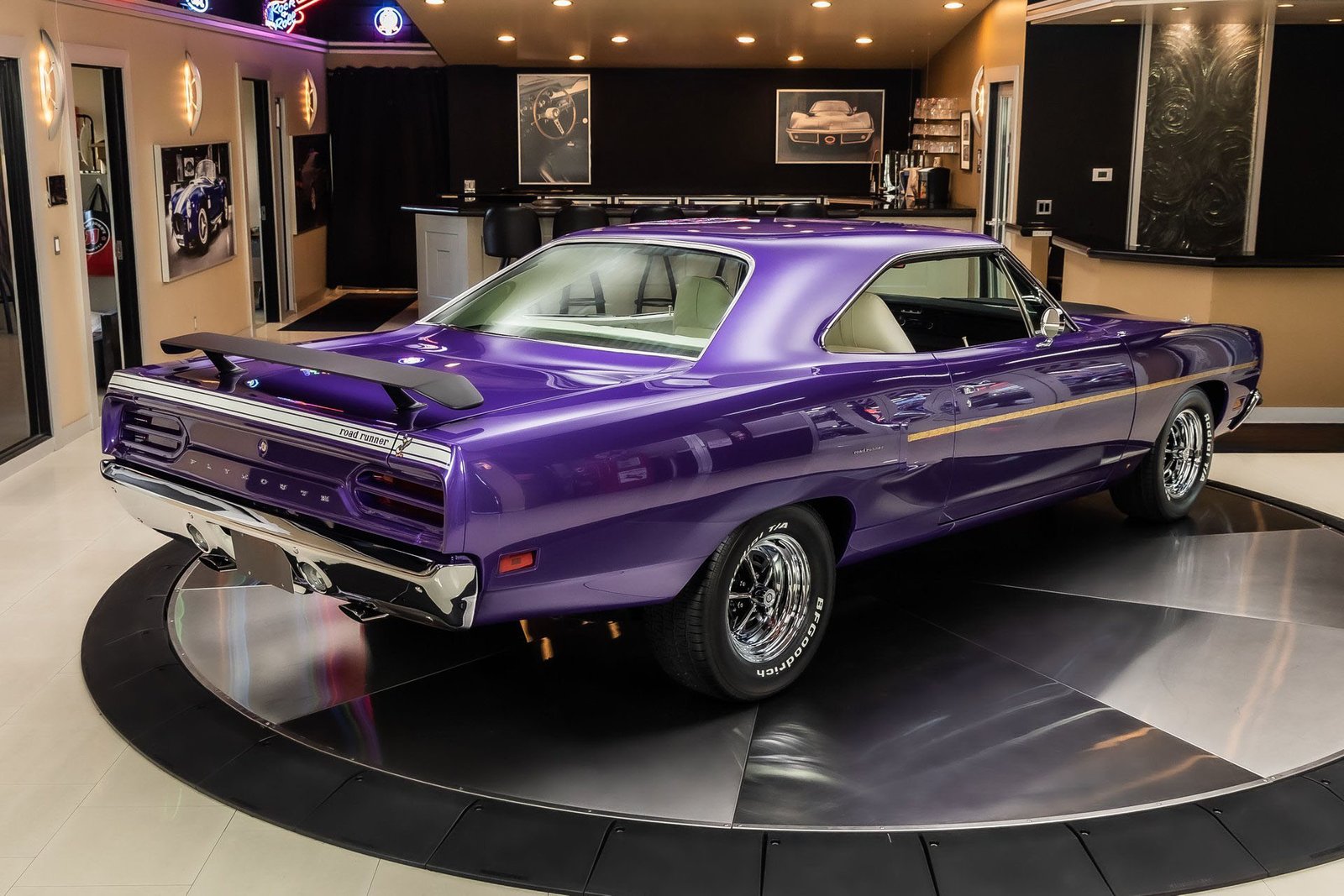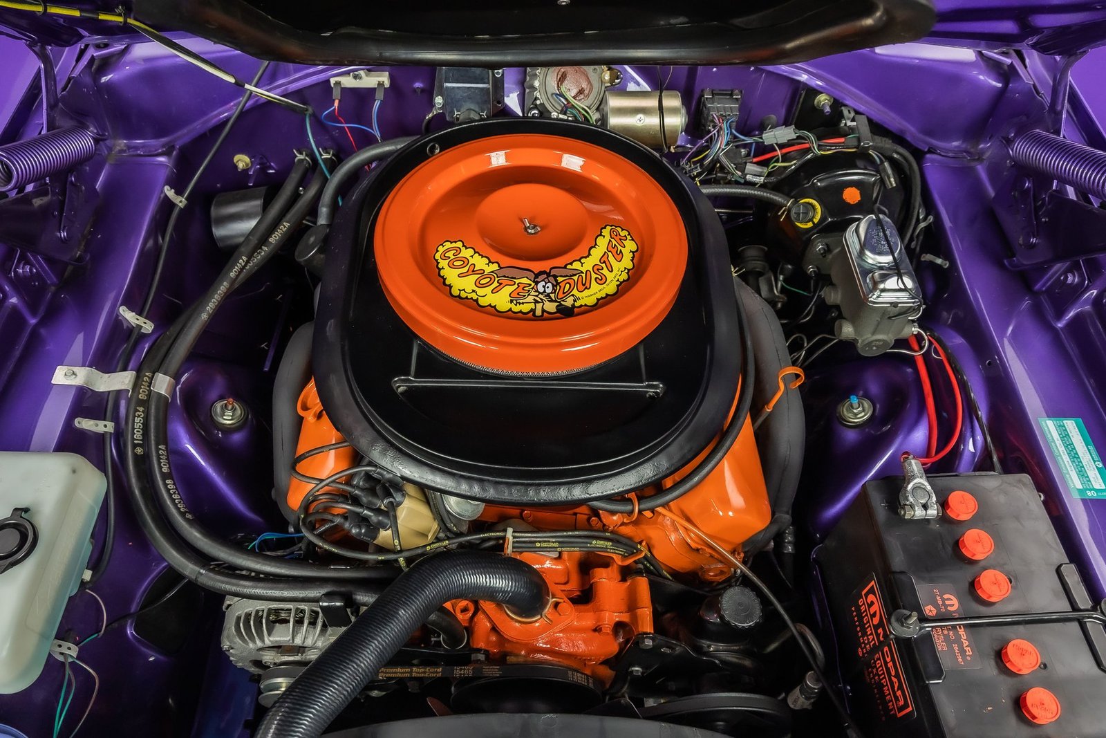 Finished in iconic Plum Crazy Purple with classic Road Runner graphics, this car delivers instant curb appeal. The color perfectly complements the muscular body lines, while period-correct wheels and trim give it a true factory-inspired presence. The quality of the rotisserie restoration is evident throughout, from the crisp exterior presentation to the exceptionally detailed underside.